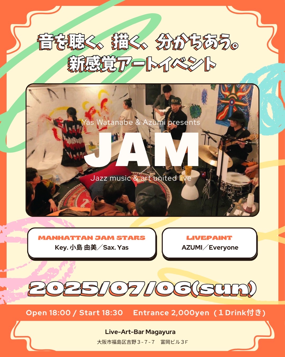 7/6 Sun. Yas Watanabe & AZUMI presents Jazz & art united live [JAM]