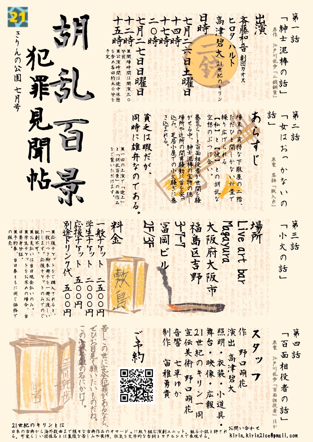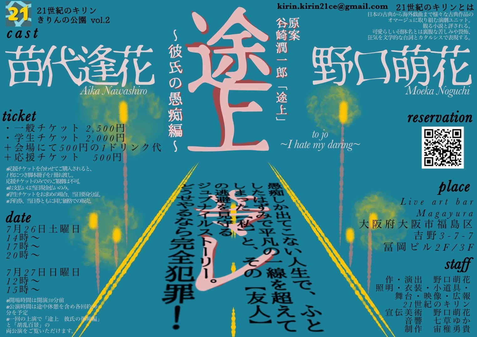 - *出演者 途上:苗代逢花、野口萌花(21世紀のキリン) 胡乱百景:斉藤和音(劇団カオス)、ヒロタ ハルト、高津碧大(21世紀のキリン)